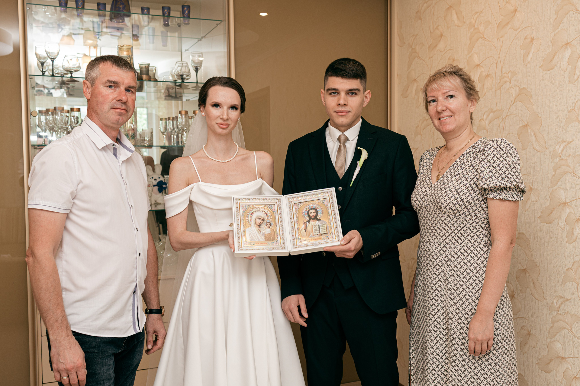 Съёмку мы начали со сборов невесты, комната была недостаточно освещена, места было мало, поэтому снимал со вспышкой Godox V1 на выносе